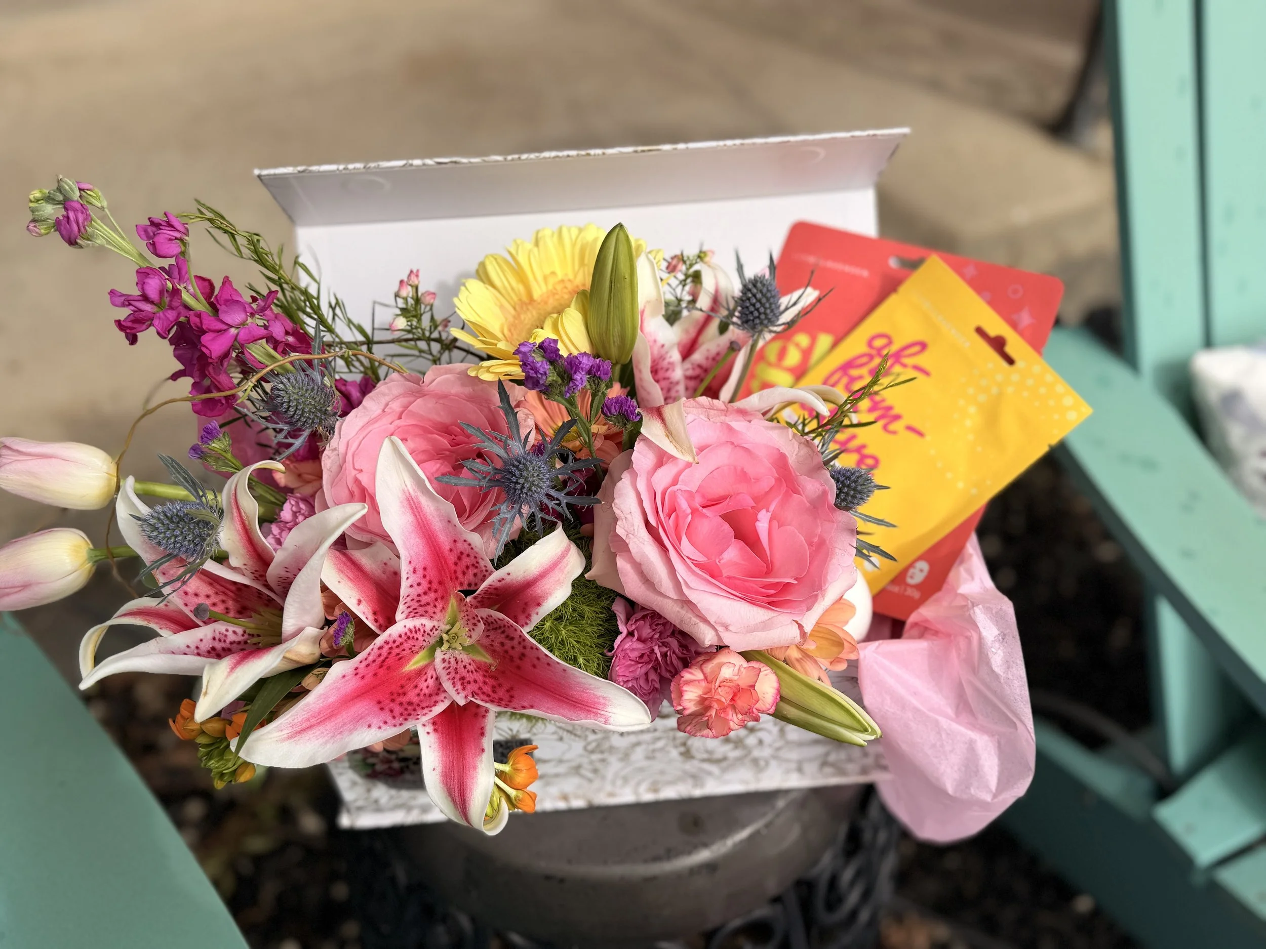 Mimosa-Bud a beautiful flower box filled with your flower choices, a facial mask, hydrating eye patches and a bath bomb so you can treat yourself Mothers Day weekend. 25% benefits Moms on the Run helping local women in Breast & Gynecological cancer treatment. Come play at Cellars 8 wine bar in downtown Carson.